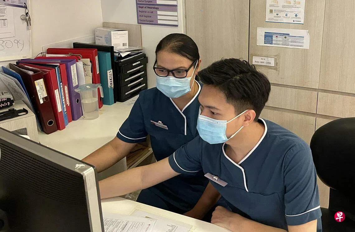 他是26岁的武工成(Vu Cong Thanh),被称为“妈妈”的是46岁的希里峇(Celleba Anak Munyan)。两人离乡背井到本地工作,目前分别在陈笃生医院担任高级护士和助理临床护理导师。