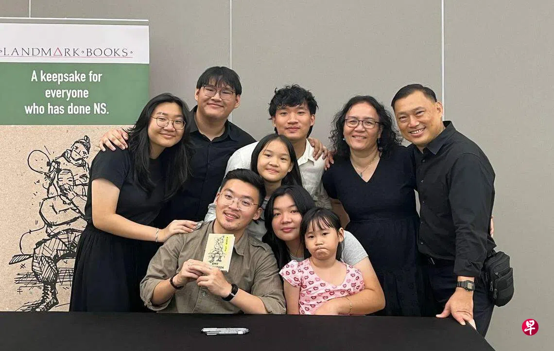 在其著作《基本军事训练素描本》(BMT Sketchbook)发布会上,他的家人,包括父母和六个弟妹,都出席支持,共同见证这重要时刻。