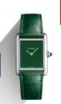卡地亚的Must腕表于1977年亮相,但标志性的长方形Tank系列在60年前就已诞生。在最新发布的多个系列腕表中,单色的Tank Must相当抢眼,精钢腕表搭配突显简约风格的表盘,摈弃罗马数字时标以及分钟轨道,全单色造型搭配同色调表带。衷于1980年代的精神,Tank Must采用三个象征卡地亚风格精髓的素色,红、蓝和绿色。由于绿色是今年众多腕表品牌不约而同采用的流行色,因而更受瞩目。