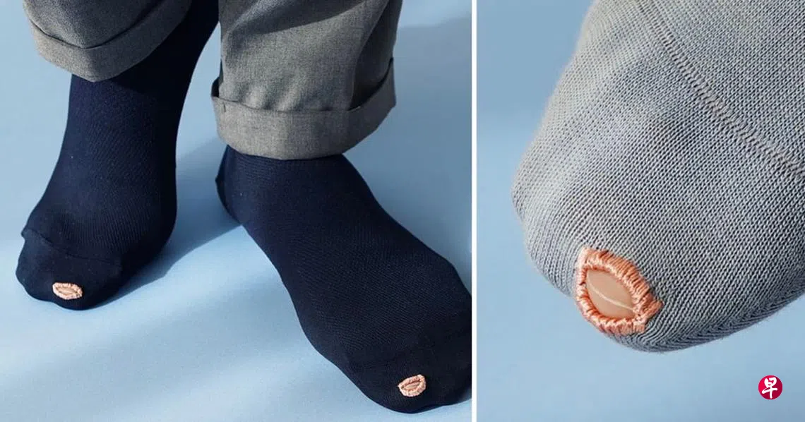 如果瑕疵本来就存在产品里,又何来破损呢?日本ekoD Works工作室设计师福泽孝之设计了一款买来就有一个破洞的袜子,还在洞口四周缝上边,变成袜子本身的一个特色。