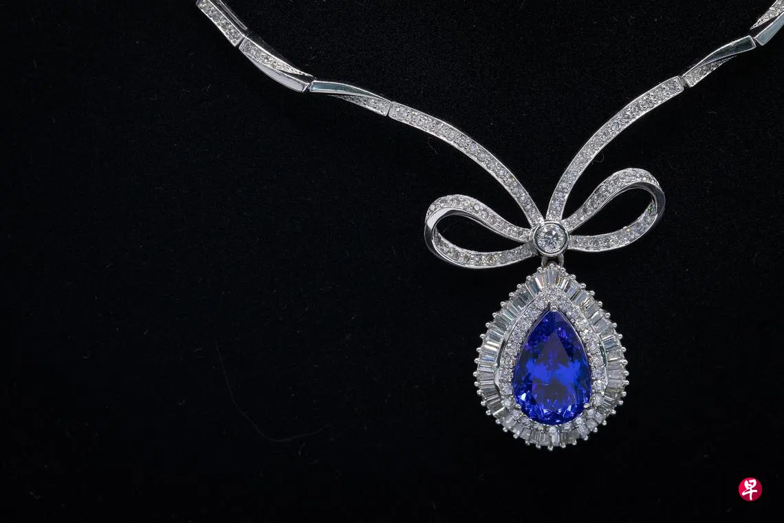 在本地,珠宝公司钻工业(Diamond Industries)一直致力于推广坦桑石。自1989年成立以来,创始人周长溪就热衷于收藏坦桑石。当时风潮还未起,他只是觉得坦桑石色泽迷人,就买了很多来收藏。直到近几年热度大涨,才把之前收藏的石头拿出来,请工匠师傅切割打磨做成珠宝。
