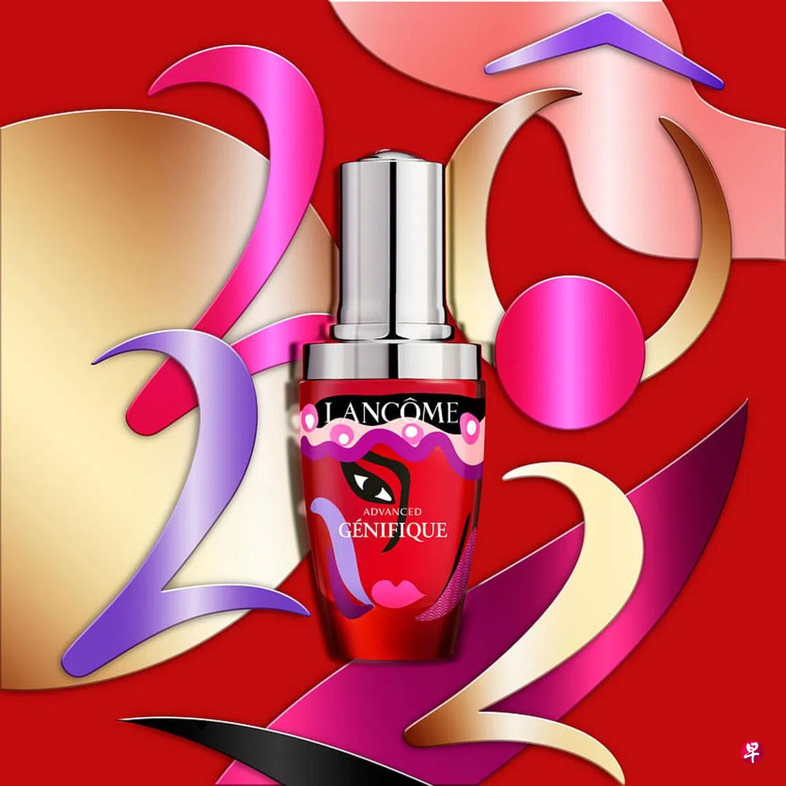 要说今年最亮眼的设计,兰蔻(Lancome)首当其冲。经典“小黑瓶”换上红装,推出中国风脸谱造型。巧妙结合京剧旦角脸谱和波普艺术风的老虎纹,打造出新年限定款艺术瓶。护肤效果自然不在话下,虽然换了瓶身,Advanced Genifique精华液成分不变,能够有效改善肌肤光泽、细纹、紧致度、肤色不均和纹理不均等问题,可用作紧急护理。过年期间熬夜涂上它滋养肌肤,第二天依旧保持满满元气去拜年。高岛屋等全岛柜台已开售,也可在Lazada网店购买,获赠新年糕点和限量版红包。