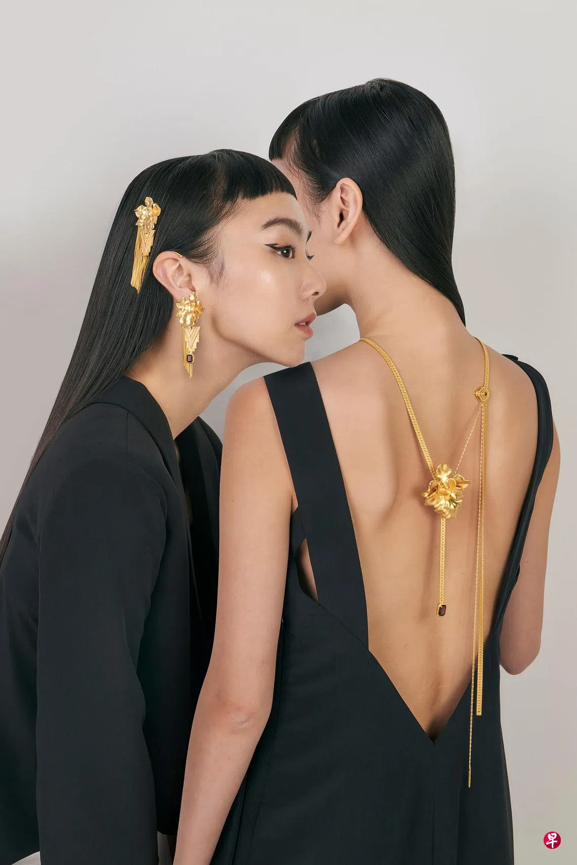 以裸背洋装著称,Stolen品牌创办人兼设计师王茵茵选了新加坡国花卓锦万黛兰,并融入既复古又前卫的艺术装饰风格(art deco),对照胡姬花的柔媚,表现出一种摩登新式的女性美。王茵茵透过胸针和耳环的黄金流苏和不规则项链的吊坠,表现出黄金像水一般的流动特质。她设计的“全耳式耳环”(ear cuff,一种扣在耳廓上,围绕整个耳朵外延的耳饰)还能随意拆组,变换至少8种不同的穿戴法,象征现代女性“能伸能屈”的弹性和多变的身份。