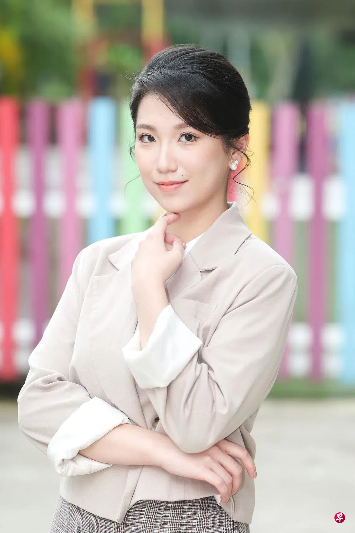 搭配妆容的关键词是干净、快速。上妆顺序是:基础护肤、防晒、遮瑕、粉底、散粉、画眉、修容。