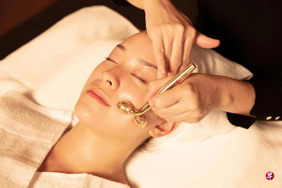 美容护理融入传统按摩手法,韩国品牌“后”(The History of Whoo)融合韩国宫廷秘方与东方医学,滨海湾金沙购物中心(The Shoppes at Marina Bay Sands,L1-31)的旗舰店,新的Whoo Spa脸部护理结合刮痧和滚动式按摩手法。