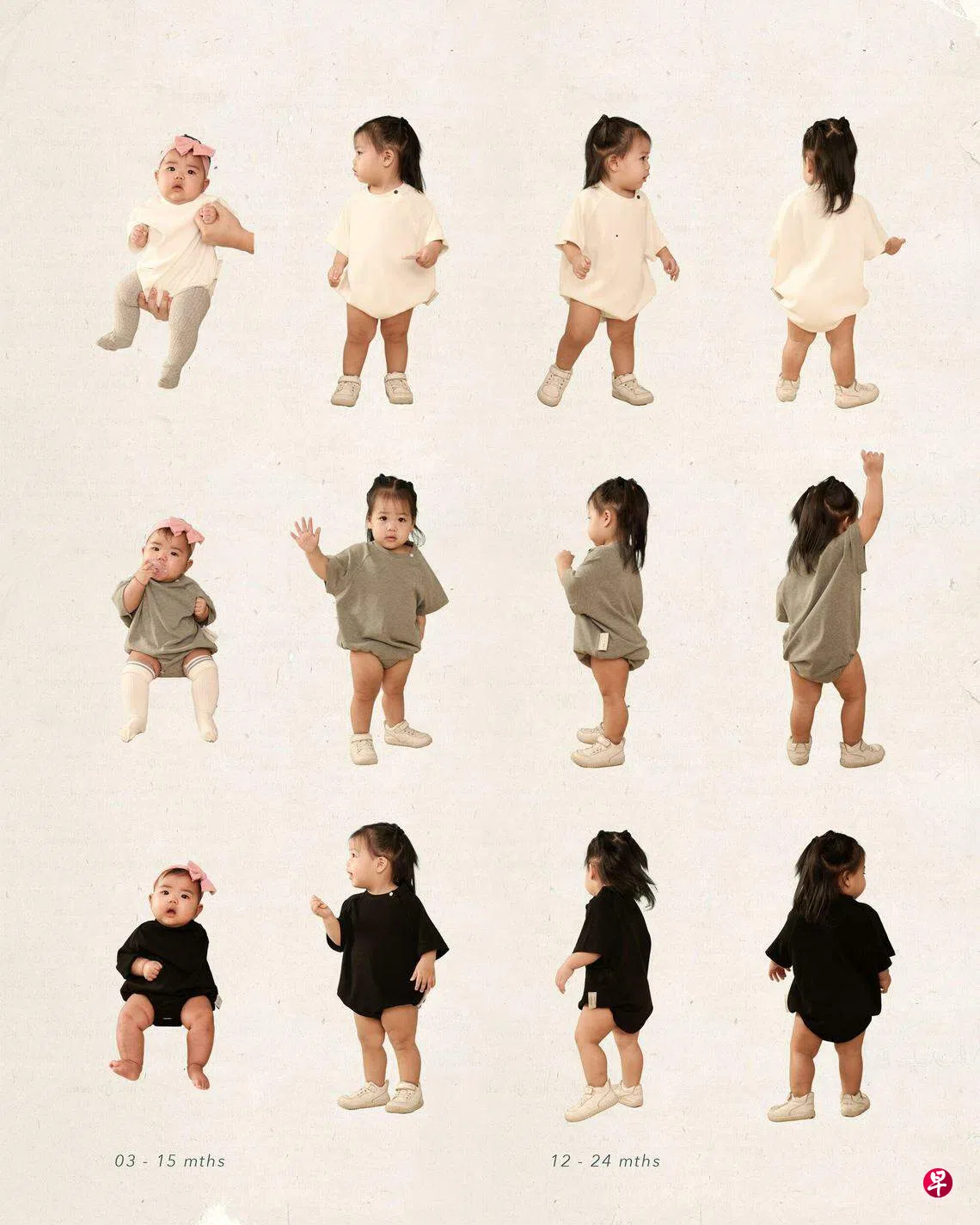 谢倩倩说,她这次只推出两个尺码的婴儿连身服,涵盖的年龄层比市面的婴儿服更广,第一款给3个月至15个月的婴儿,第二款给12个月至24个月的宝宝。当宝宝长大时,顾客可把婴儿服送回店里,免费缝制成T恤,延续衣服的生命,延迟它们被送到垃圾堆的命运。Graye服装的版型偏向宽松(over-sized),婴儿服的版型也是如此,父母与宝宝能玩twinning亲子装。