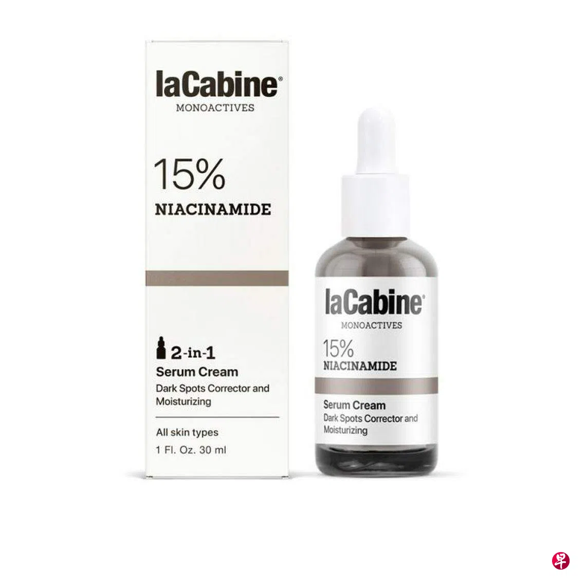 西班牙著名医美保养品牌LaCabine以安瓿(ampoule)包装的浓缩医美产品著称。品牌现推出懒人产品,含有15%烟酰胺成分的二合一精华护肤霜(15% Niacinamide 2-in-1 Serum Cream),在淡化黑斑之余又能达到保湿功能,一次就能省去两个步骤。