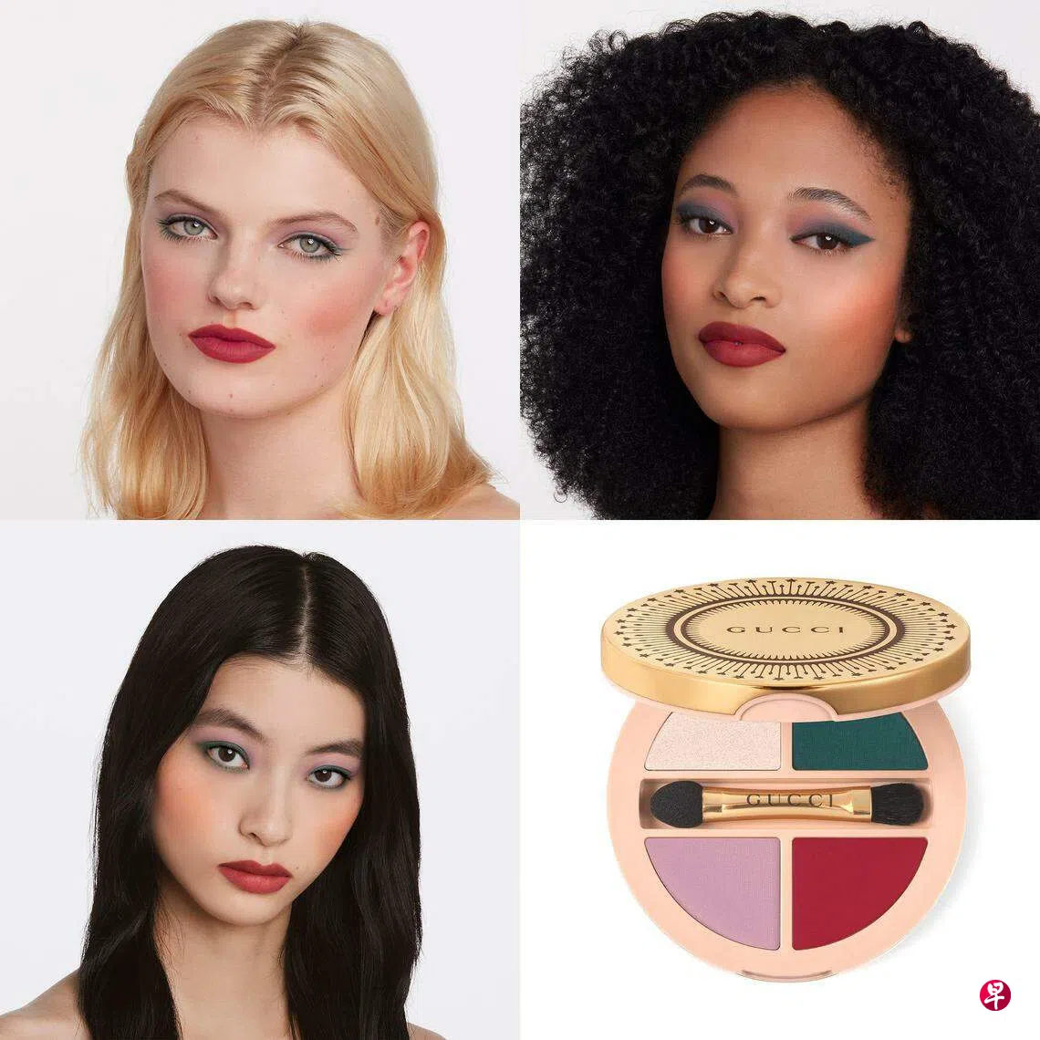 眼影可以选彩虹色调或带金属光泽的,让你眼前一亮,心情愉悦。粉嫩的腮红是营造活力元气的关键,除了脸颊颧骨,也可在鼻尖轻轻扫上。想更快速上妆,Gucci Beauty首款四合一化妆盒,可一次过为眼影、腮红和双唇上色。嘴唇来个“嘟嘟唇”,仿佛吃了棒棒糖,有点珠光色泽,更有糖果甜蜜感。建议上完口红后叠加唇釉,双唇显得丰盈饱满。