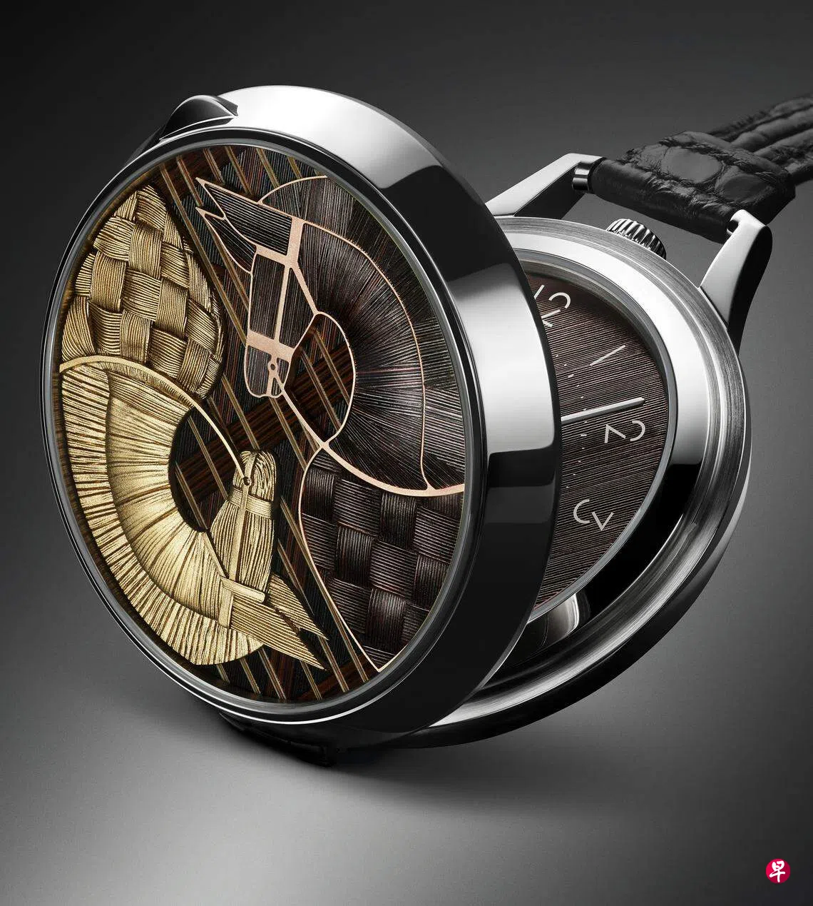 爱马仕这枚艺术气息浓郁怀表在表盖和表盘位置,演绎由泰国设计师Terawat Teankaprasith构思的Masan & Masan方格图案。马鬃编织是一门古老工艺,泰语为Masan,意为“编织的马”。工匠采集大量凤眼蓝,在阳光下晒干,然后以纯手工编织出篮子、帽子、凉鞋或动物造型的小工艺品。