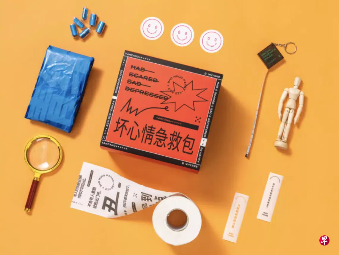 遇上坏心情日,身边备个有几分无厘头的坏心情急救包,里头六种大脑洞好玩配件,随便拿一个出来自娱自乐,赶跑坏心情。“镇定胶囊”做成一个药瓶的形状,打开胶囊,随意抽取一个“锦囊妙计”去执行,譬如看一部喜剧电影,来一场解压泡泡浴。“急救手册”里收录了各种名人语录的高能绝句:毛姆说“为了灵魂宁静,一个人每天要做两件他不喜欢的事”,马克·吐温说“我从来不让上学耽误我的学习”,随便翻一句来隔空对话。“反内卷厕纸”上面写着各类内卷场景,把厕纸揉乱撕碎,让烦恼随之消散。无论用怎样的方式,给情绪找个出口,痛快宣泄出来,别让自己的心成为情绪垃圾桶。