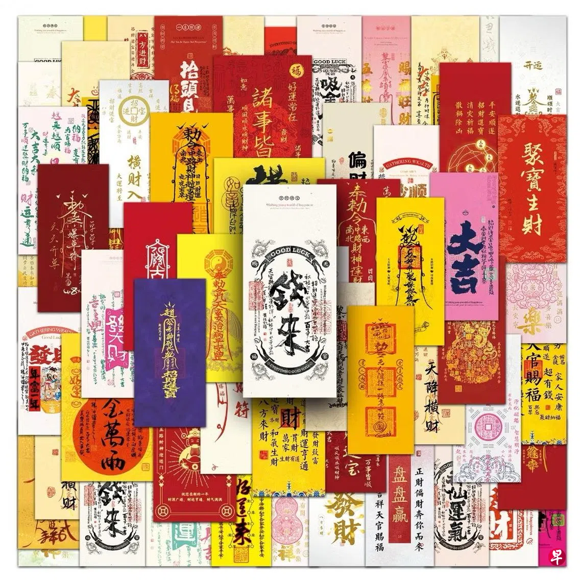 有的同事把自己办公桌装饰成一座“神坛”似的,远远看到黄底红字的符,生人勿近,真是“虾米拢勿惊”(什么都不怕)。但近看,上面的字句原来并非满天神佛地辟邪用(消散坏老板除外),而是写满对工作的期许和祈福。Shopee输入“Chinese Fortune-attracting talisman”上搜到一套60张各式各样的职场护身、招财、招好运的贴纸,可贴桌面、电脑、行李箱等。60张一个人用得完吗?跟身边同事同享,博感情呗。