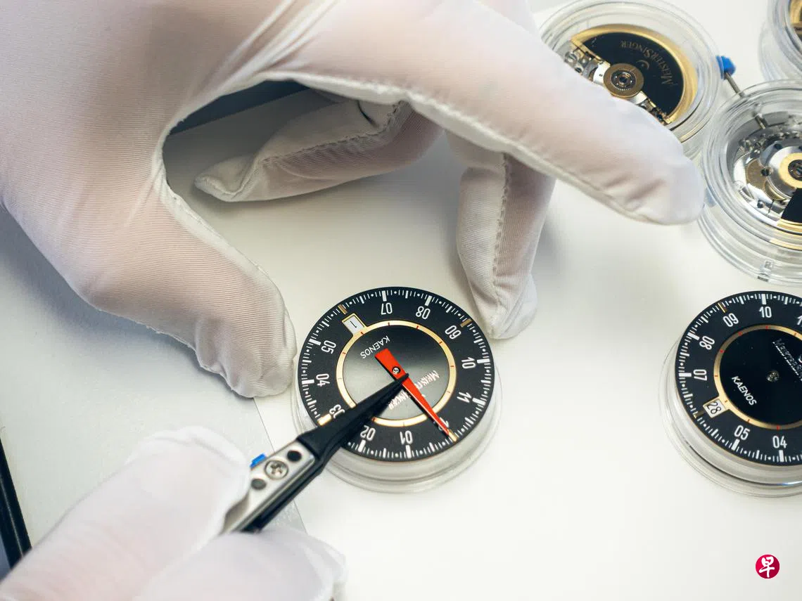 表盘采用上下叠层设计,上层切割出数字与刻度,下层覆以夜光材质,形成三维效果并增强夜间可读性。新设计的指针同样带有夜光,并呼应早期计量仪器的风格。Kaenos与Kaenos Open Date两条产品线各有四种表盘颜色,包括午夜黑、浅灰、冰蓝和汽油色,随光线折射展现丰富层次感。