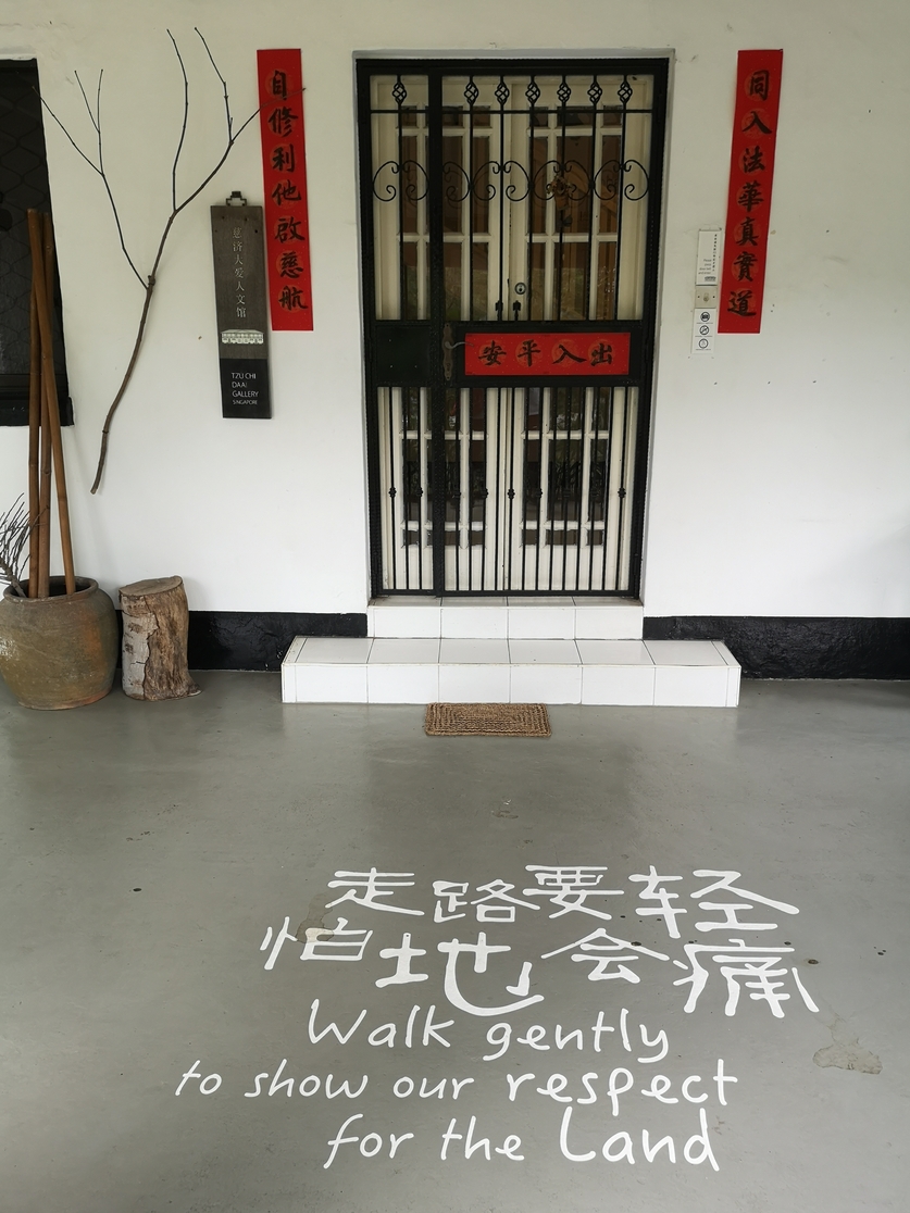 眼前所见的黑白屋大多为私人房地,同样闲人免进。唯一对外开放的是“慈济大爱人文馆”(137 Queen's Avenue),免费参观。馆内分几个展区,介绍慈济半个世纪来在世界各地展开的慈善活动,也有阅读角落可以坐下来让心灵沉淀。里里外外布置得文艺雅致,门口地面上写着“走路要轻,怕地会痛”,浮脚楼底下巧妙设计成“森呼吸空间”。大太阳下乱走一圈来到这里迎面一阵清新,瞬间从旧时代英国风情,穿越到台湾式的文青氛围,别有一番趣味。