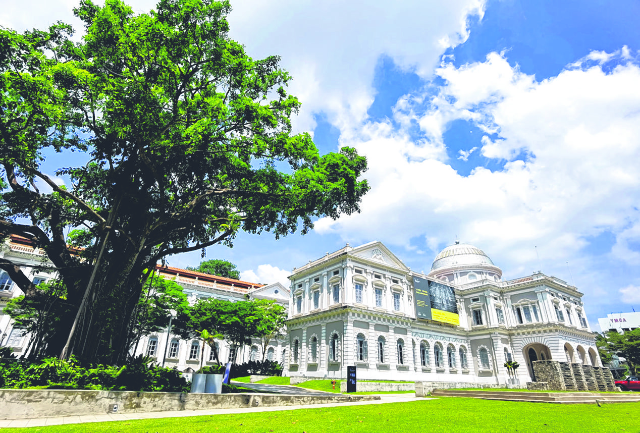 新加坡国家博物馆除了前门壮观堂皇,其背面对着福康宁公园,写着博物馆的巨型英文字母,草坪放置两个雕塑艺术品,无论晨间或午后,光影斑斓,是不可错过的拍摄地点。