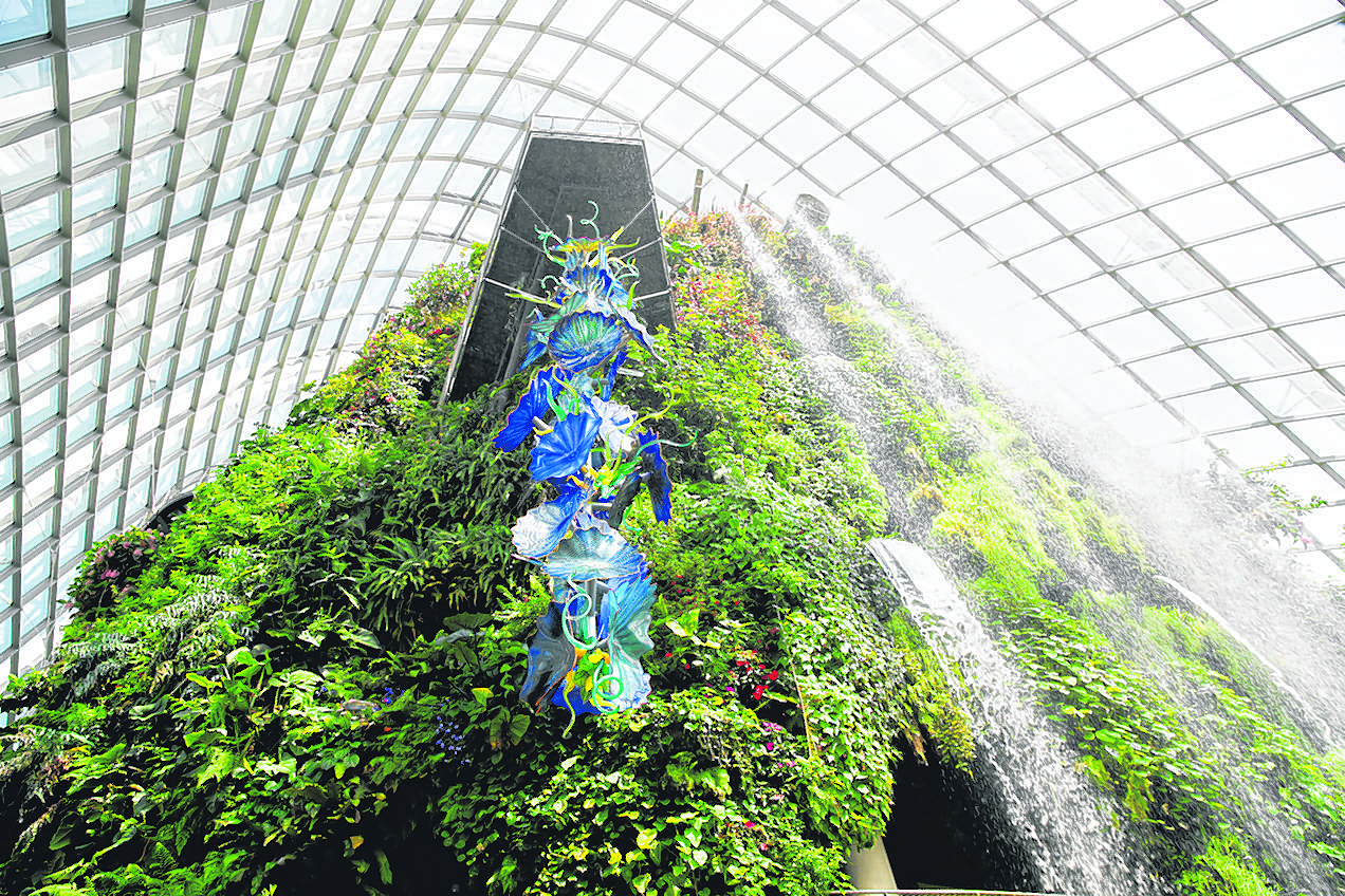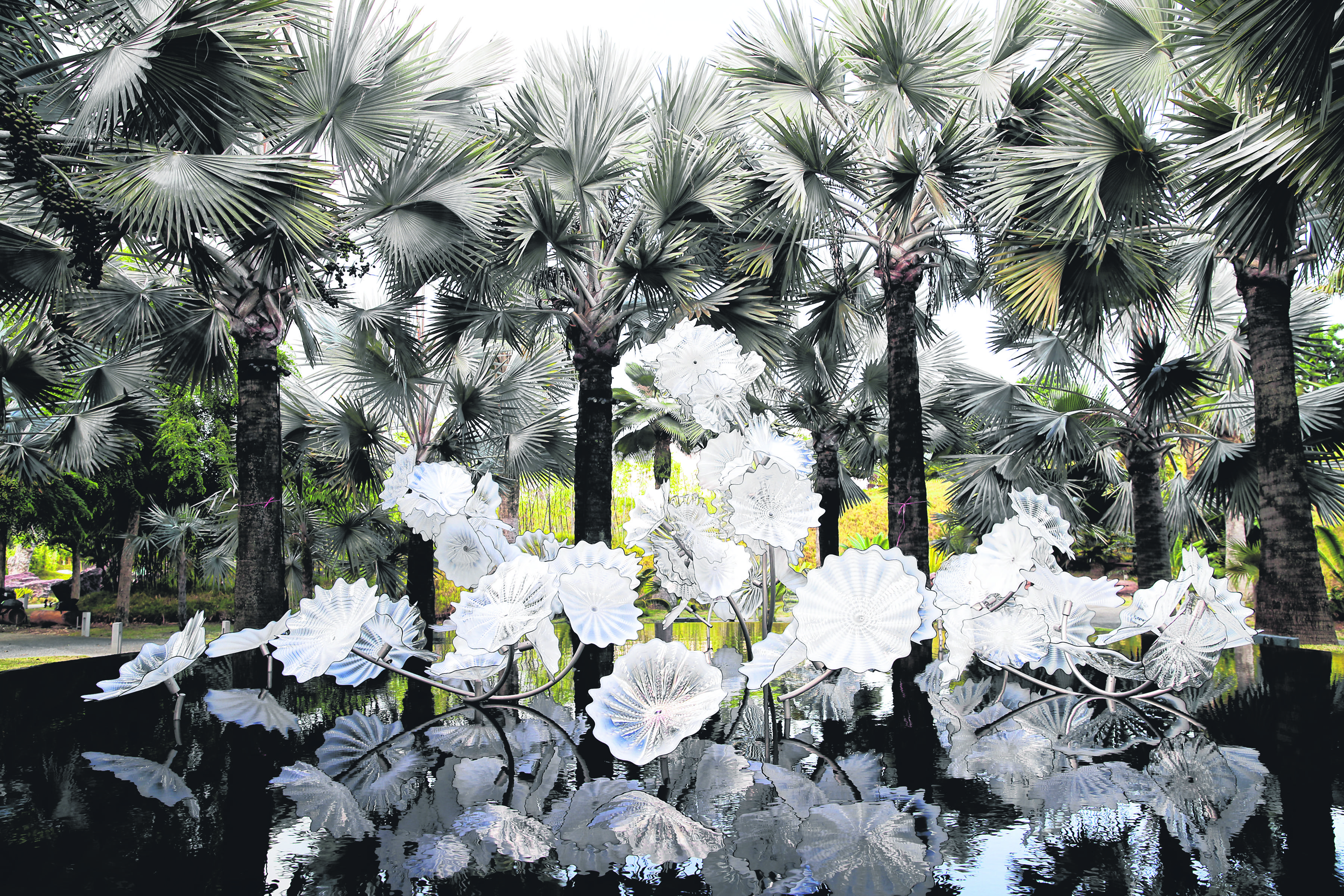 享誉国际的美国玻璃艺术家戴尔·奇胡利在新加坡滨海湾花园举行亚洲第一个花园展“戴尔·奇胡利:玻璃盛展”,展出约140件作品,25组装置散置室内外,营造沉浸式体验。奇胡利接受《联合早报》电邮专访,谈他一生对玻璃艺术的激情。