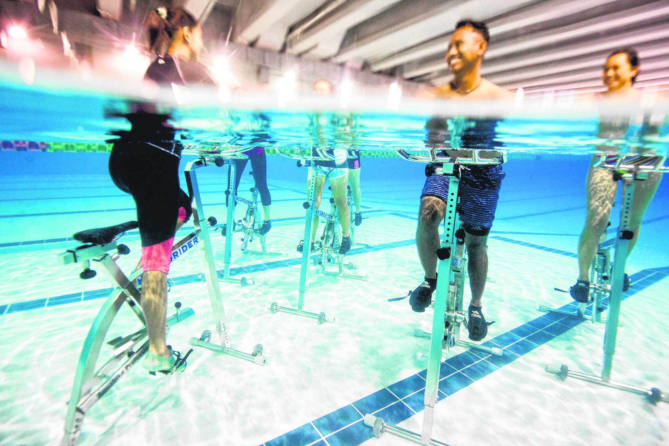 她提到,水中脚踏车或许予人不必大汗淋漓的印象,但事实上心率和呼吸都会加速,属于高强度的运动。她解释:“这不只是在水中骑脚踏车做腿部运动,教练也会要求学员用手臂支撑着左右摆动身体,因此会用到全身肌肉。此外,许多原本在陆地上无法做到的高难度动作也可借助水的浮力做到,让人更有动力挑战自己完成指定动作。”