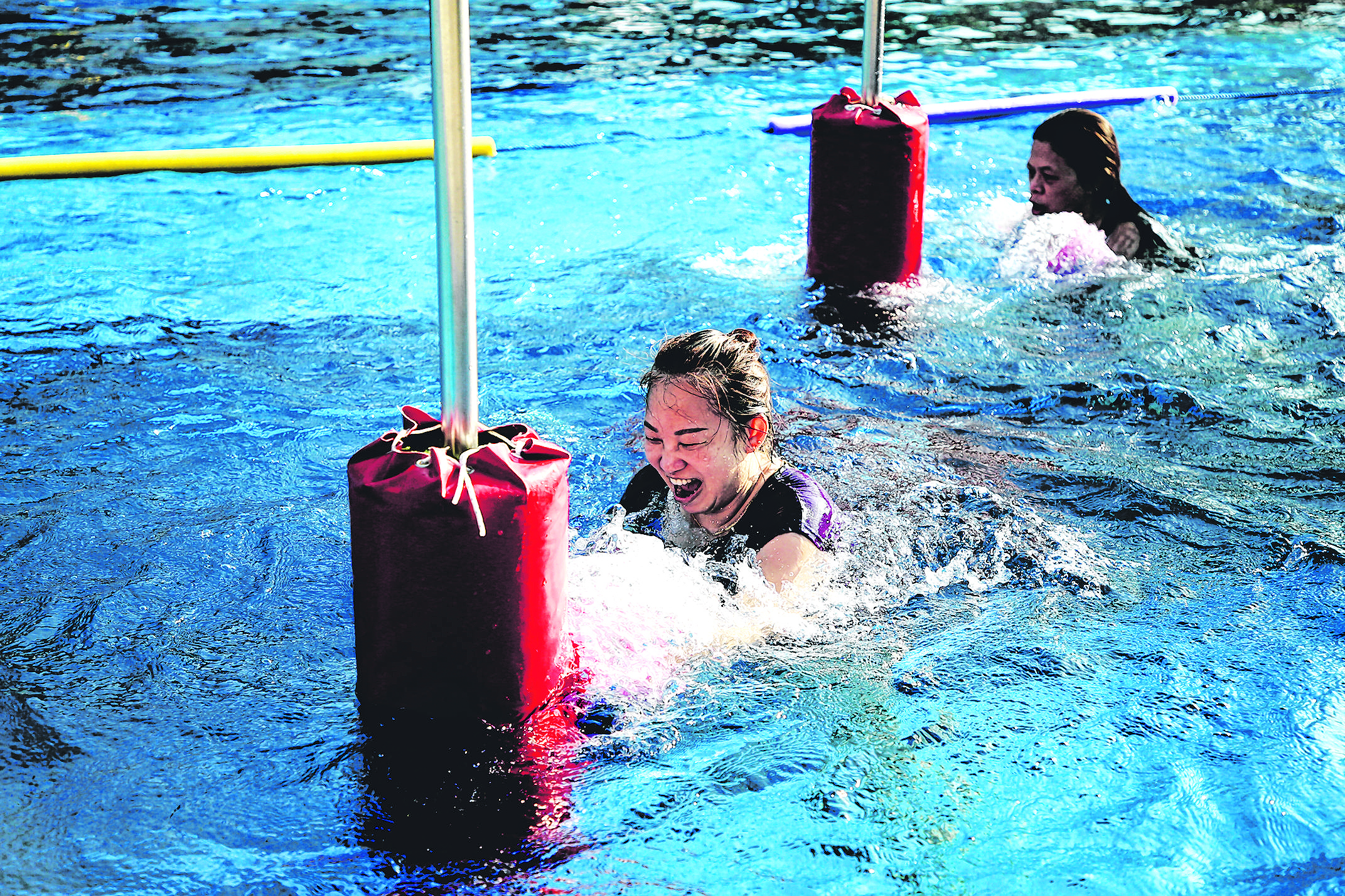 关淑莹说:“由于是在浅水中运动,学员不必会游泳,一般身体状况良好的人都可以做,尤其是有膝盖、腰部或背部损伤的人。医疗专家指出,水中锻炼对膝盖和关节的影响较小,因为水的浮力有助于支撑关节,也能减少心脏的压力。此外,水带来的清凉感能减少出汗的不适。”