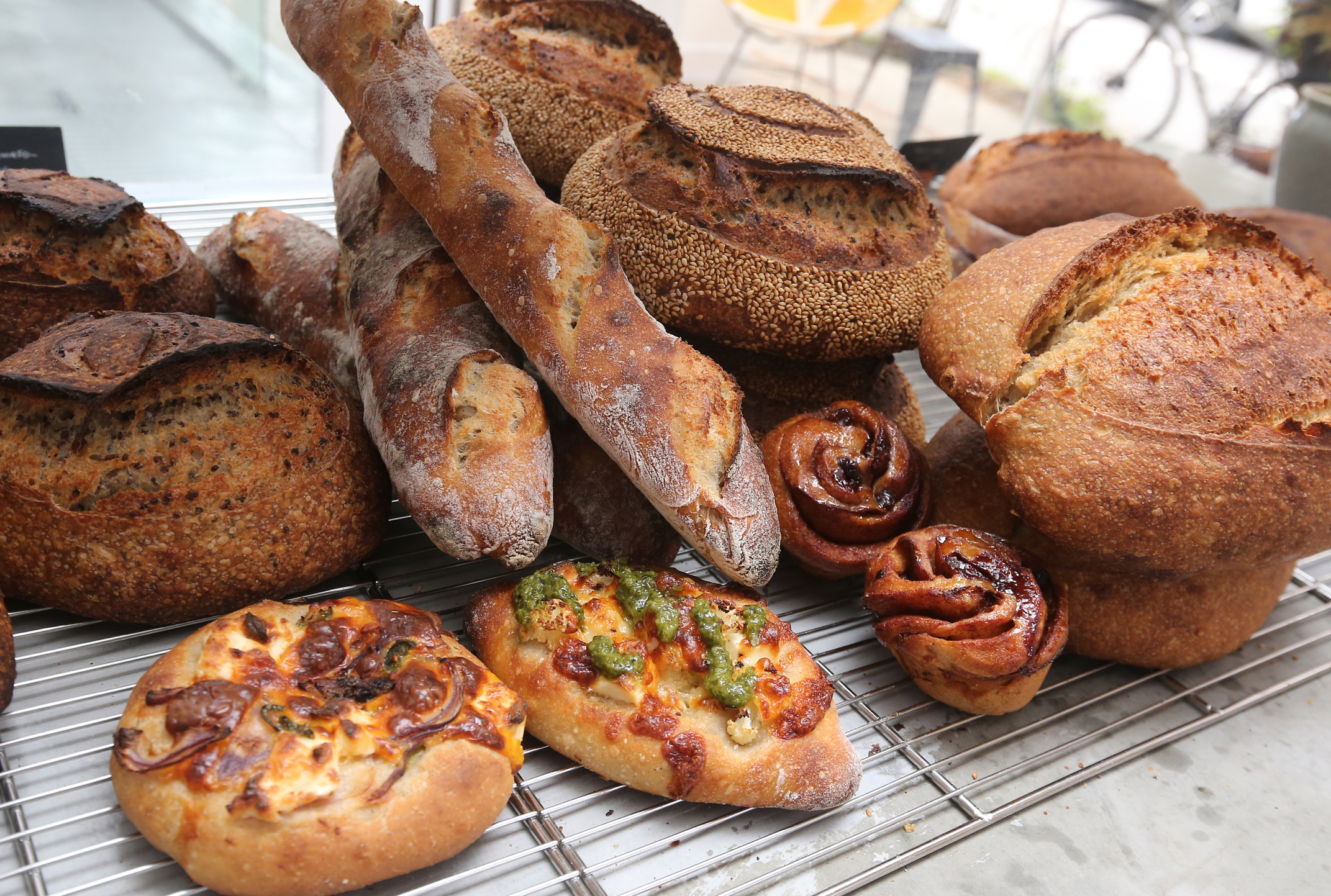 这里的面包有酸面包、咸与甜味的Tartine面包、桂皮面包卷和果仁酱面包卷等。