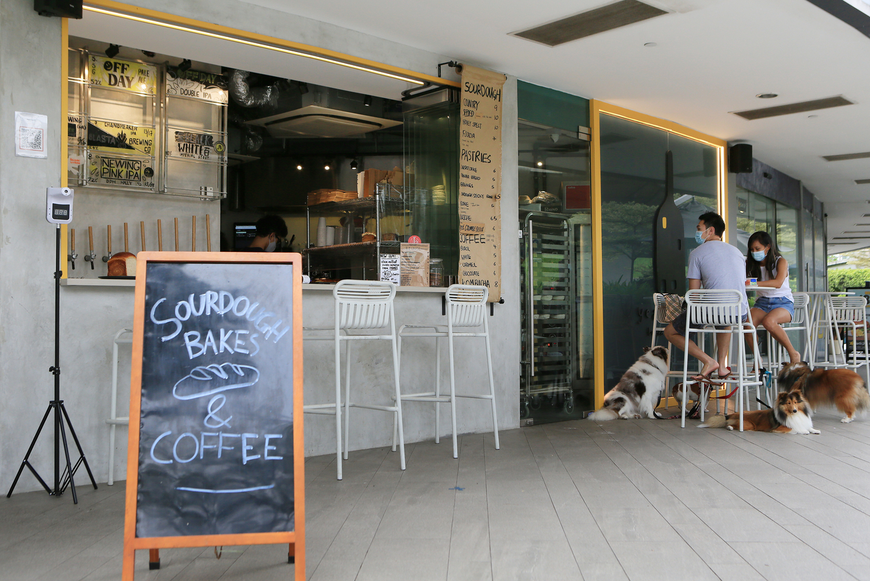这里采用开放式橱柜陈列面包,让顾客可以看到早上新鲜出炉的面包,闻到面包香。二楼的设计,受绿色走道(Green Corridor)和金文泰森林(Clementi Forest)启发,融入自然的元素,希望打造舒适的用餐环境。