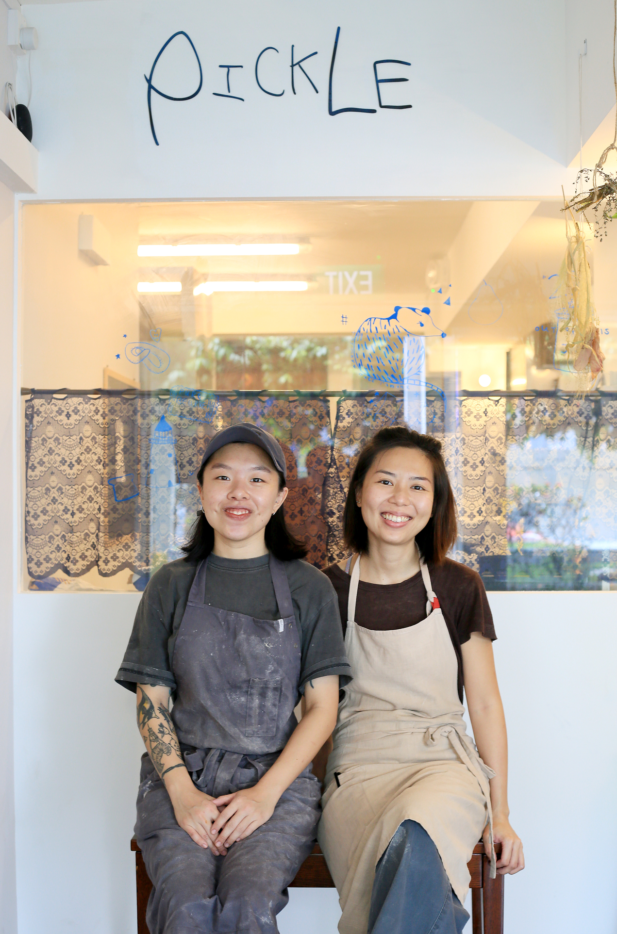 她与谢佩臻为面包店取名时,就不想要有“bread”(面包)字,倾向有趣味的名字。如果有留意Pickle的两个腌制黄瓜的标志,眼睛比较大的是谢佩臻,有酒窝的是蔡晚星。