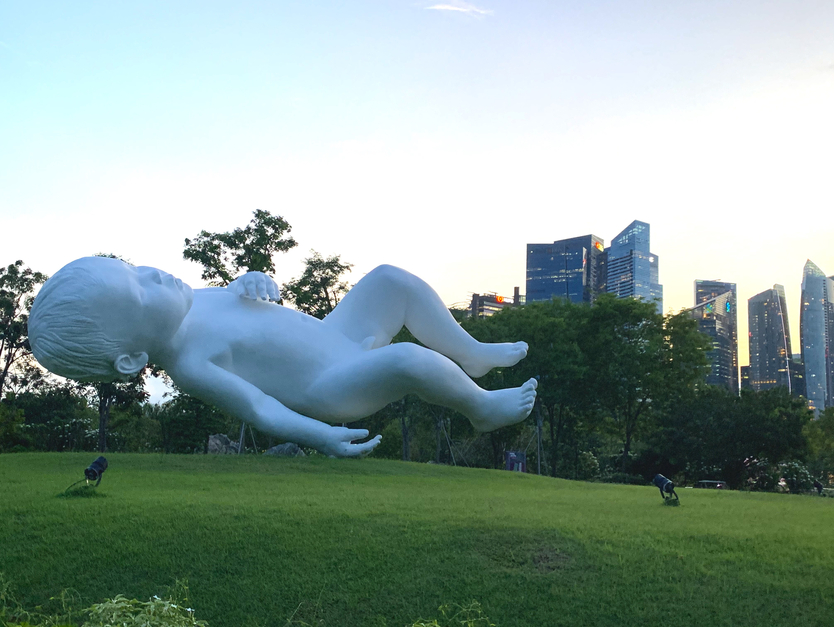 除了商厦,公园其实是一个更适合展示大型公共艺术的舞台。在福康宁山的一角,有个东南亚雕塑公园,平时很少人走过,也较少人提及,因此显得更为宁静,似乎能听见这些雕塑的呼吸或叹息。滨海湾公园也是看公共雕塑的好地方,那巨大的婴儿和背后疯狂生长的城市相映成趣。现在滨海湾公园正在举办美国玻璃艺术家戴尔·奇胡利的特展,其中有几处免费对公众开放,让人见识到这些璀璨脆弱的华美,那不就像是生命里最值得珍惜的东西吗?总是“世间好物不坚牢,彩云易散琉璃脆”。