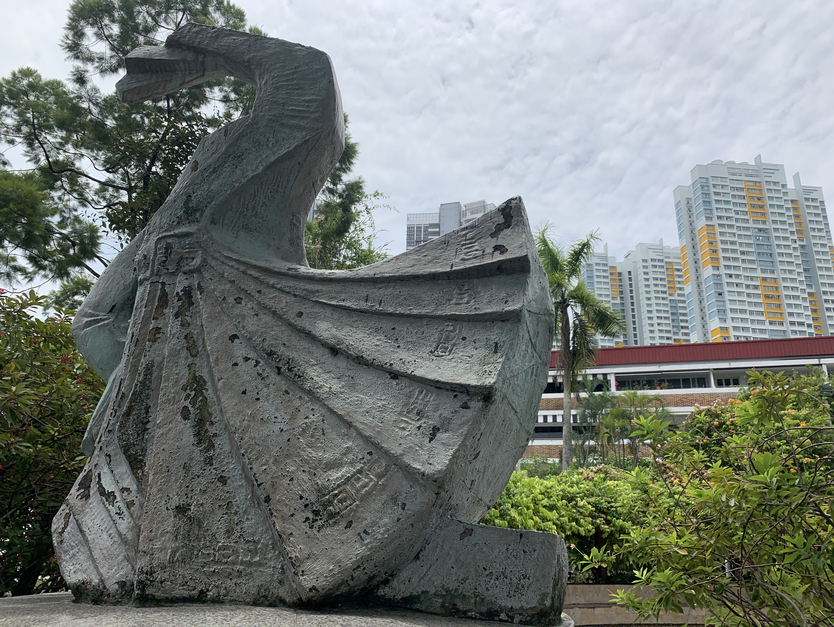 在中峇鲁,有个被人忽略的社区公园里有一座被人忽略的作品,或许你也能由少女裙摆的皱褶里看出一些熟悉的细节,这名为《跳舞的女孩》的水泥雕塑,是林浪新的作品,他更广为人知的创作就是新加坡的地标鱼尾狮。这女孩自70年代就在此翩翩起舞,当时一些居民认为这作品过于抽象,更像个即将起飞的天鹅。艺术家也深谙创作一完成,就有了自己的生命,不同人能有不同的解读方式,他认为天鹅也无妨,因为天鹅是象征吉祥的飞禽,希望能给中峇鲁带来繁荣。