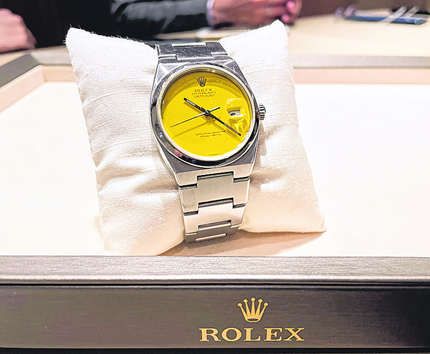 侯绍华说,那次走宝没留下一枚Paul Newman Daytona,是他入行以来最大的遗憾。但侯绍华自此不再错过,他现在拥有的劳力士腕表贵精不贵多,都极具珍藏价值。访问当天,他戴着的是一枚1985年的劳力士17000 Ultra Rare Yellow Stella,是劳力士罕有的石英表,由于上漆的黄色表盘非常稀有,他以八万美元的高价买入,现在叫价估计至少20万元。