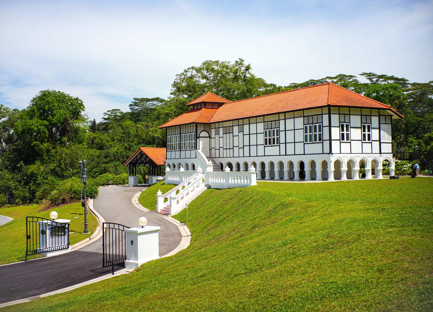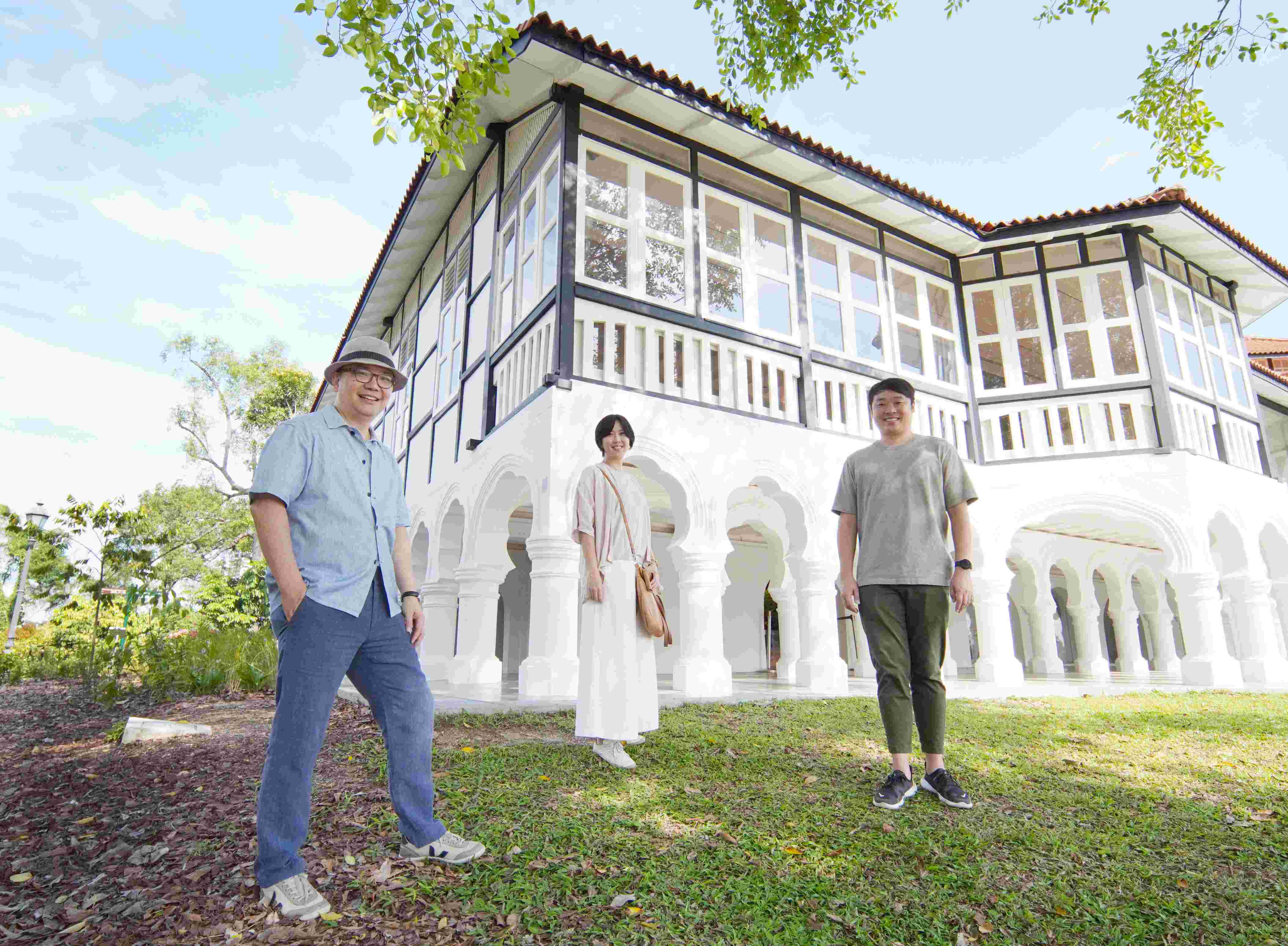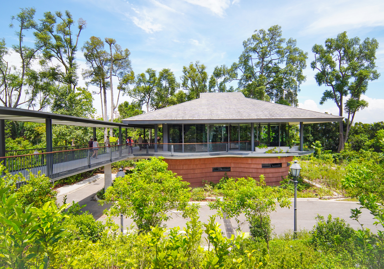 重新规划后的植物园格洛扩展区的蓝图,是以双洋房为核心展开。扩展区有三个入口处,我们跟随建筑师团队,从位于泰瑟道(Tyersall Ave)的访客中心进入,走道为尚未开发的荒野热带雨林包围,葱葱郁郁,拐个弯,山坡上的5号洋房雅柏拉出现在眼前。