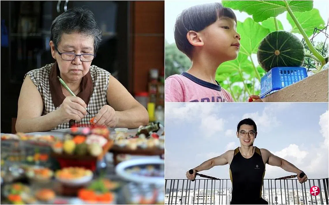 居家防疫期间,家庭主妇洪素卿在家玩黏土,捏制各种本地美食模型。鹰阁医院护士黄颖睿,则用另个身份——健身教练,鼓励人们在线上健身,他也上网课并取得两项健身专家认证,希望全面推广科学健身。从事广告业的欧思远,居家期间投入绘画,画兴更浓,练笔更勤。七岁的史天与把家后院杂草丛生的防护土坡,变成他想象的花园,从小学生晋升为小农夫。
