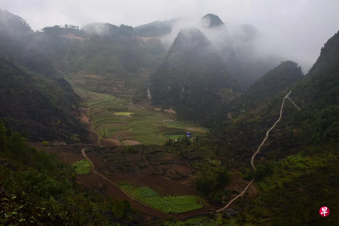 铺天盖地的喀斯特山峦,郁郁葱葱,如钟似乳,茶园相接于朦胧间。烟雨幽径,桃李村居,彩绘了一幅幅撩人的仙境。这闭塞的世外桃源,既保留着僻静一角的神秘面纱,散发出原始的魅力,又离不开世俗的感染。