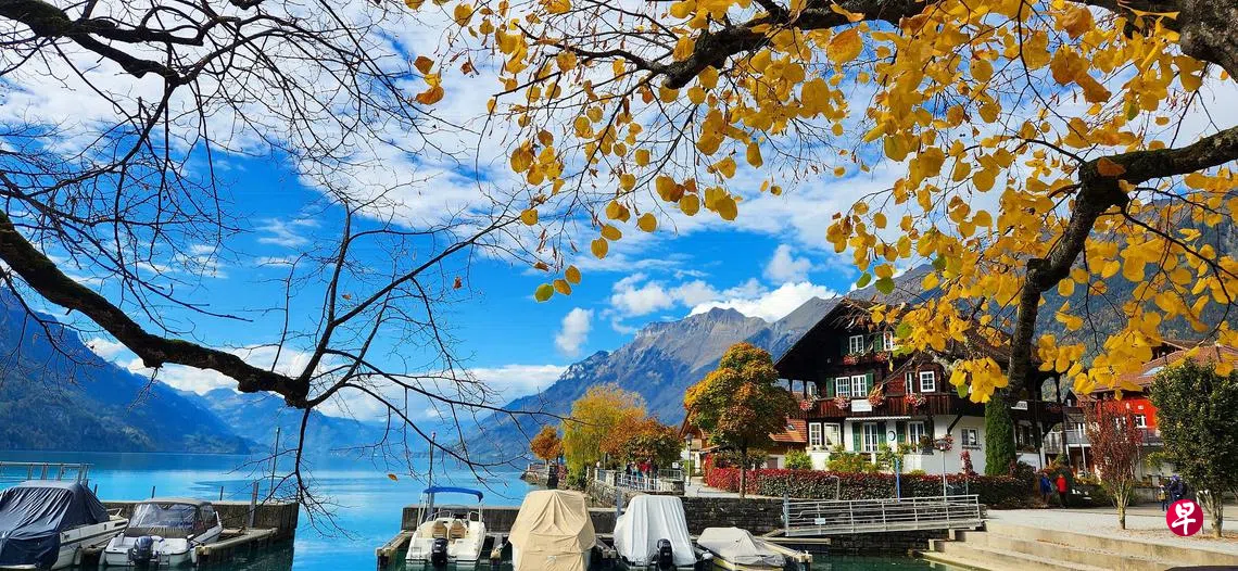 等了两年多,我终于飞去瑞士旅行,因为看了一部韩国电视剧《爱的迫降》,剧中有些外景在瑞士拍摄,每一帧风景都美得让人心醉,所以这次特意游览瑞士。10月的瑞士,已经进入秋季。秋天的瑞士没有旅游旺季的绚烂与热闹,却可以让人安静地赏遍浪漫秋色。枝头的树叶由绿到红,由红到黄,再随风飘落,一幅幅秋天美丽的风景画,让我连眼睛都舍不得眨。