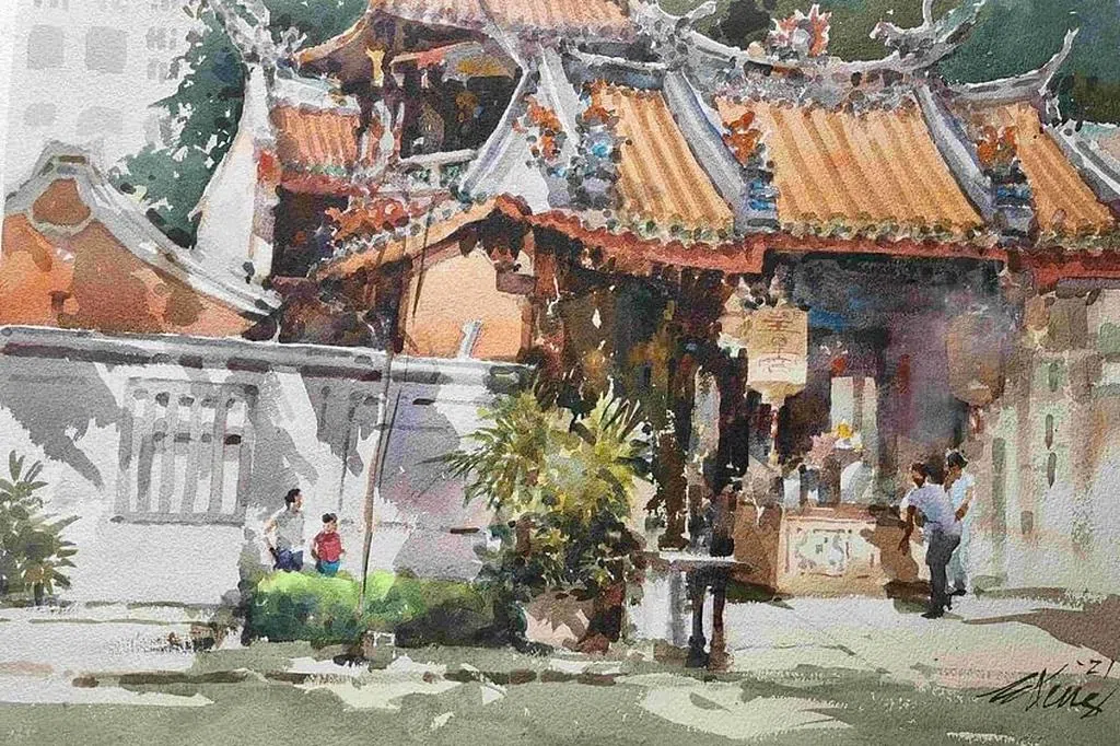 新加坡水彩画家李运启若不在写生,就是往写生的路上。他是这么说的:“我的画是百分百在户外写生的。以后脚力不行了,肯定有在室内画的机会,现在都在户外画,拍照留给以后用。”