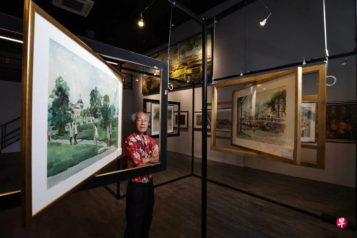 李运启是新加坡水彩画会发起人之一,在赤道艺术研究会学画打下写实基础,1965年毕业于南洋美专(南艺前身)西画系,作画超过一甲子。即使高龄79,近年听力较弱,他仍骑脚踏车去写生,每星期一两趟。