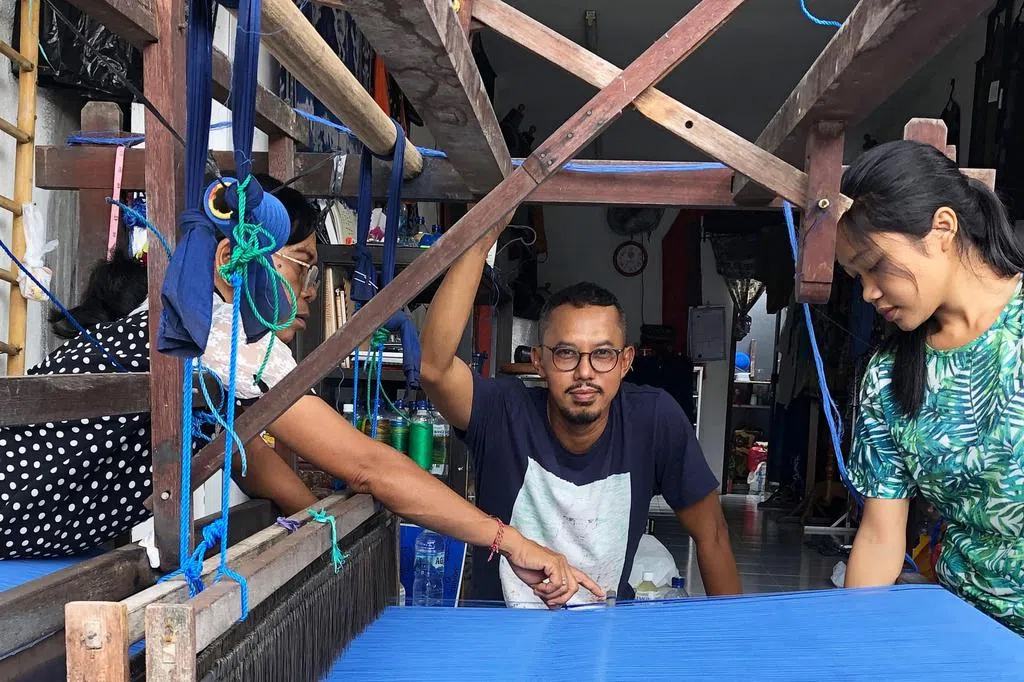 印上绿色图案的一只咖啡杯按了按钮后发出声响,画家巫思远告诉杨劼,这件雕塑可当门铃用,也有人买了这类门铃雕塑带回加拿大。杨劼说,第三者目光有助艺术家创作,赋予作品新感触。一支倒挂汤匙旁边灯管下置放大镜,光慢慢亮起,可当灯饰,创作者形容“好像留一盏灯,父母留了汤品等你回家的感觉。”