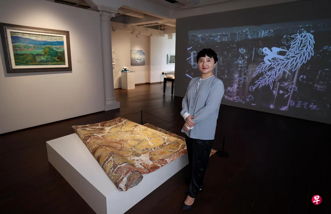 海莱二楼大荧幕播放中国福建艺术家吴俊勇多媒体视频《月昇》,一轮明月中的剪影队伍令人联想先辈漂洋过海下南洋。2022年移居新加坡的董炜(50岁)接受《联合早报》访问时说,“中国传统文化传承曾被‘打岔’,但在新加坡并未中断,这里的现代艺术脉络可以追溯至上海美专、艺专等。我们想在新加坡立足扎根,与当年南来前辈作品交流融汇。这是我们这代人的使命。还有,印度、东南亚的艺术在新加坡才看得到,我们感到新鲜好奇,文化就是要相互交流的。”