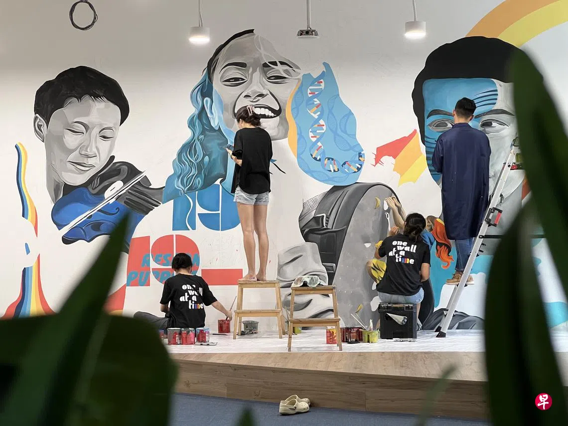 在岛国发展的过程中,壁画记录着不同地区的习俗与文化风貌。以往的作品集中在牛车水、小印度、甘榜格南一带,是旅客打卡的热门点。随着近来不断走入社区邻里,现在的壁画从创作内容到艺术风格都趋向更为多元化的表达。