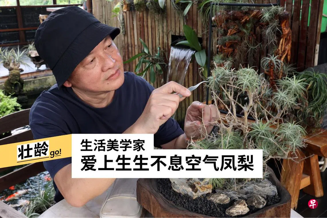 在淡马锡理工学院念书时,吴延塔学的是美术和平面设计。深厚的美学根基,加上自修与研习,一株株看似普通的空气凤梨,经过他的巧思,无需多余点缀,展现空气凤梨的自然姿态,每个细节都显露他对植物生机的敬畏,让人忍不住驻足欣赏。