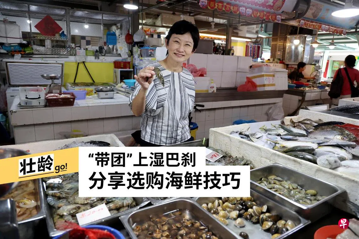 陈明慧的教学方式为新手而设,她带学员光顾自己熟悉的摊贩,提醒大家买海鲜一定要“动手”才知道是否新鲜,摊贩若不让顾客触碰海鲜,她绝不光顾。