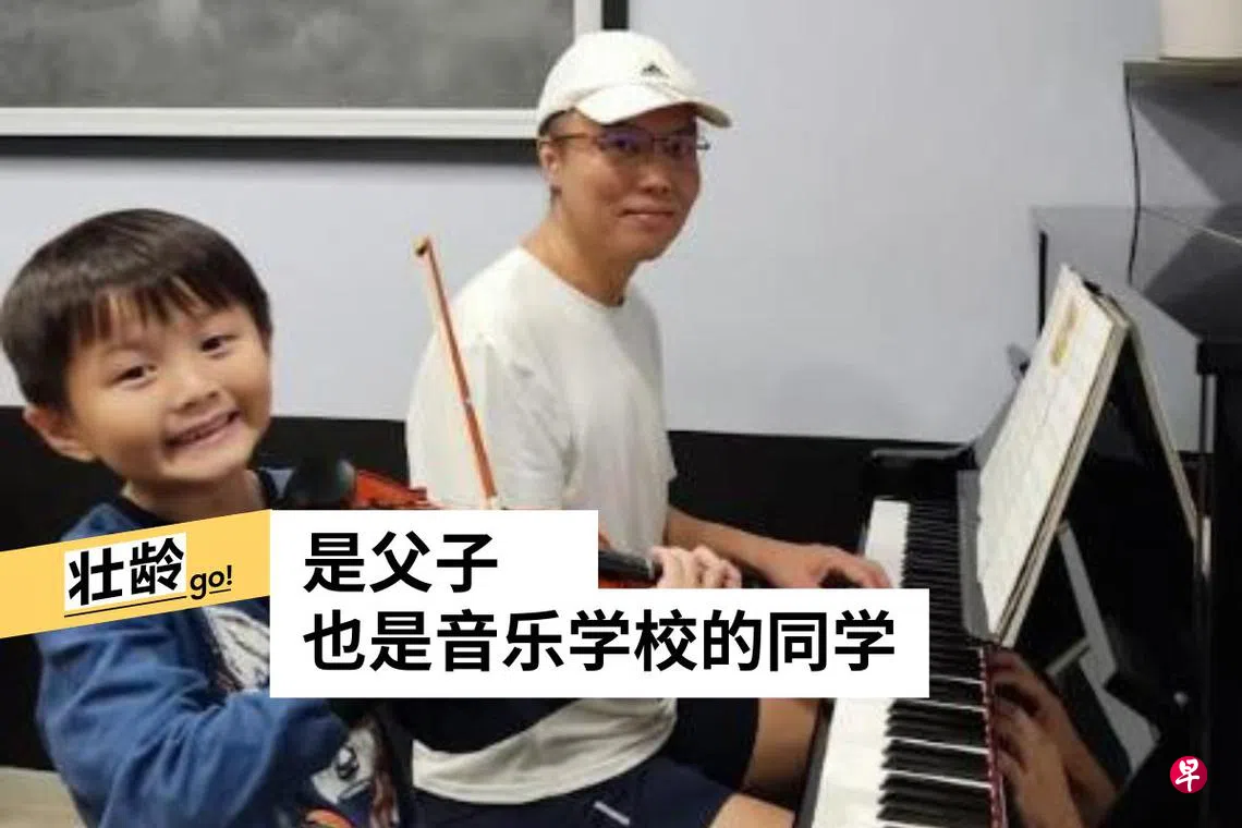 只不过,孩子学的是小提琴,爸爸学的是钢琴。