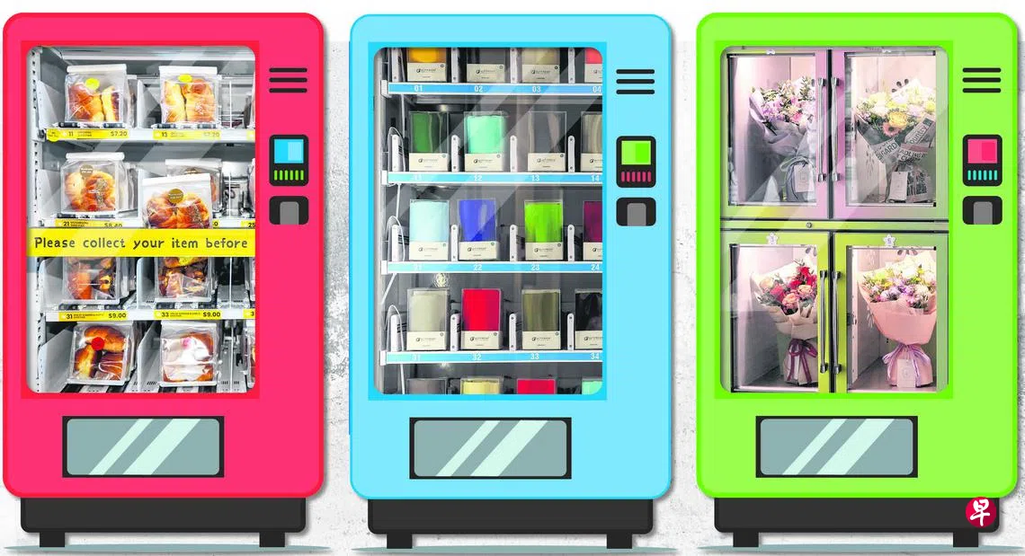 现在,这股贩卖机热潮也吹到了新加坡。本地街头开始陆续出现各种创意贩卖机,商品包括鲜花、面包、蛋糕、衣服,甚至还有榴梿。