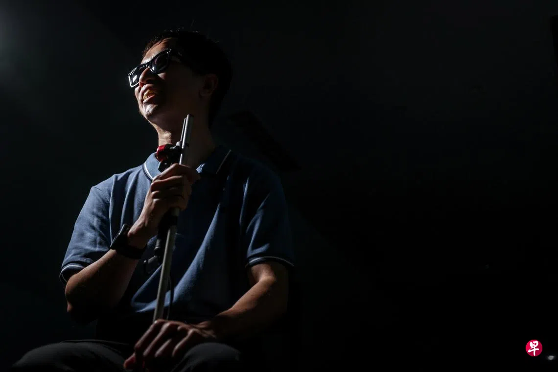 在新加坡视障人士协会(SAVH)会议室准备受访的司徒韦铭(46岁)戴着墨镜,个子不高,有点腼腆不安。重提那段醒来后视线骤然模糊的往事,他已能平静得如叙他人故事。