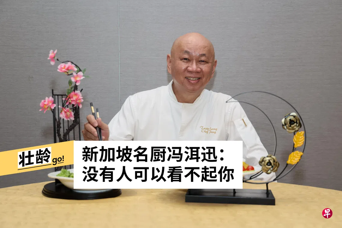 光头形象鲜明的新加坡名厨冯洱迅(65岁),是中餐界极具代表性人物之一。