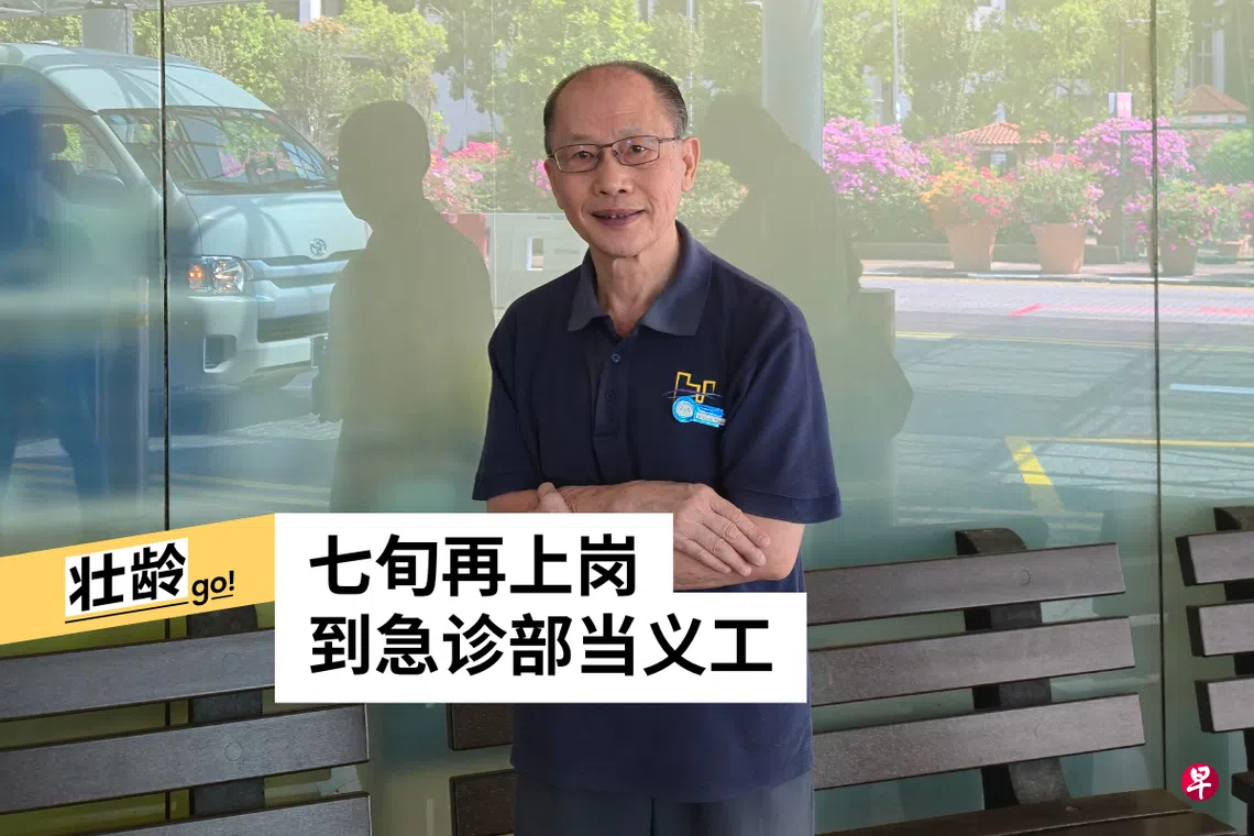他没有因为自己已届七旬而止步。经过专业的理论与实践培训,他顺利通过测验,选择到离家不远的樟宜综合医院服务。