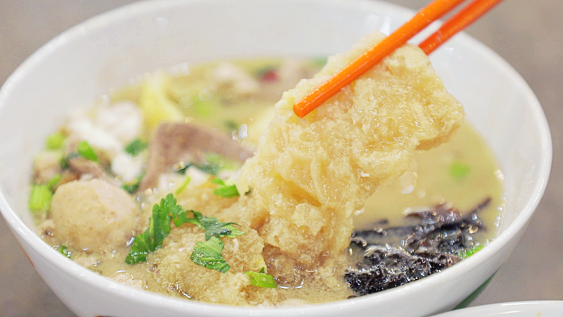 招牌面与鱼鳔汤成功的秘诀在于鼎记的独门秘方汤底。鼎记区域经理陈家铭告诉我们,他们每天一早就开始熬汤,加入新鲜的猪大骨、鸡骨以及特制的精华,熬制至少三小时,才煮出香浓醇厚的汤。最后再加上炸到香脆的鳊鱼粉,给汤提鲜提味,让人第一口就能喝出它的鲜甜芳香。