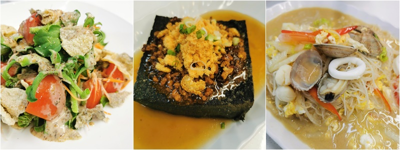 同中求异的还有招牌海鲜焖米粉($6起),海鲜包括小带子、苏东、啦啦和虾,最重要的是特别熬制的汤底,成就了每一口米粉。花雕白兰氏蒸鸡($22)以半只鸡取代田鸡,上桌时才倒入蒸热的鸡精。五香南乳炸肉($10起)不会太肥腻,外脆内香,很适合下酒。