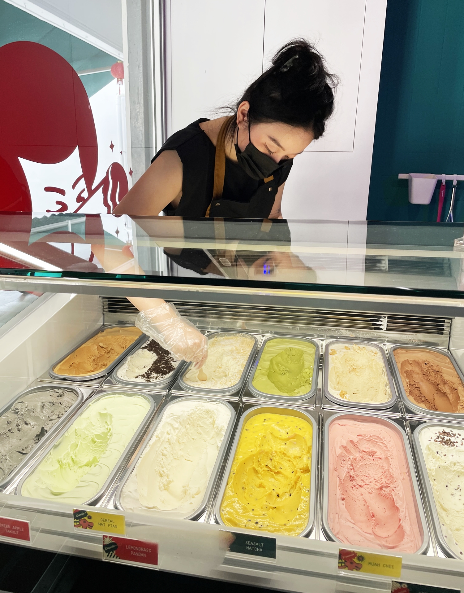 店里的麻糍冰淇淋采用手工制作,口感绵密,花生与奶香十足,搭配特别细致的花生碎,十分别致。