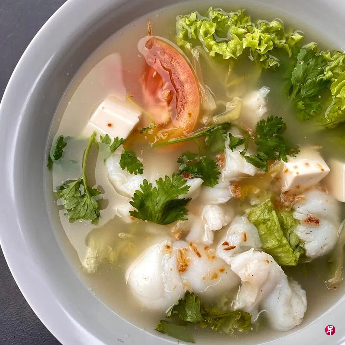 摊位售卖峇当鱼($5)、海鲜汤($6)和五香($3)。挑选新鲜的鱼肉是关键,另一重点是鱼汤汤底,用鱼骨、猪骨和鸡骨熬煮,并加入昆布提升鲜味和味道的层次。