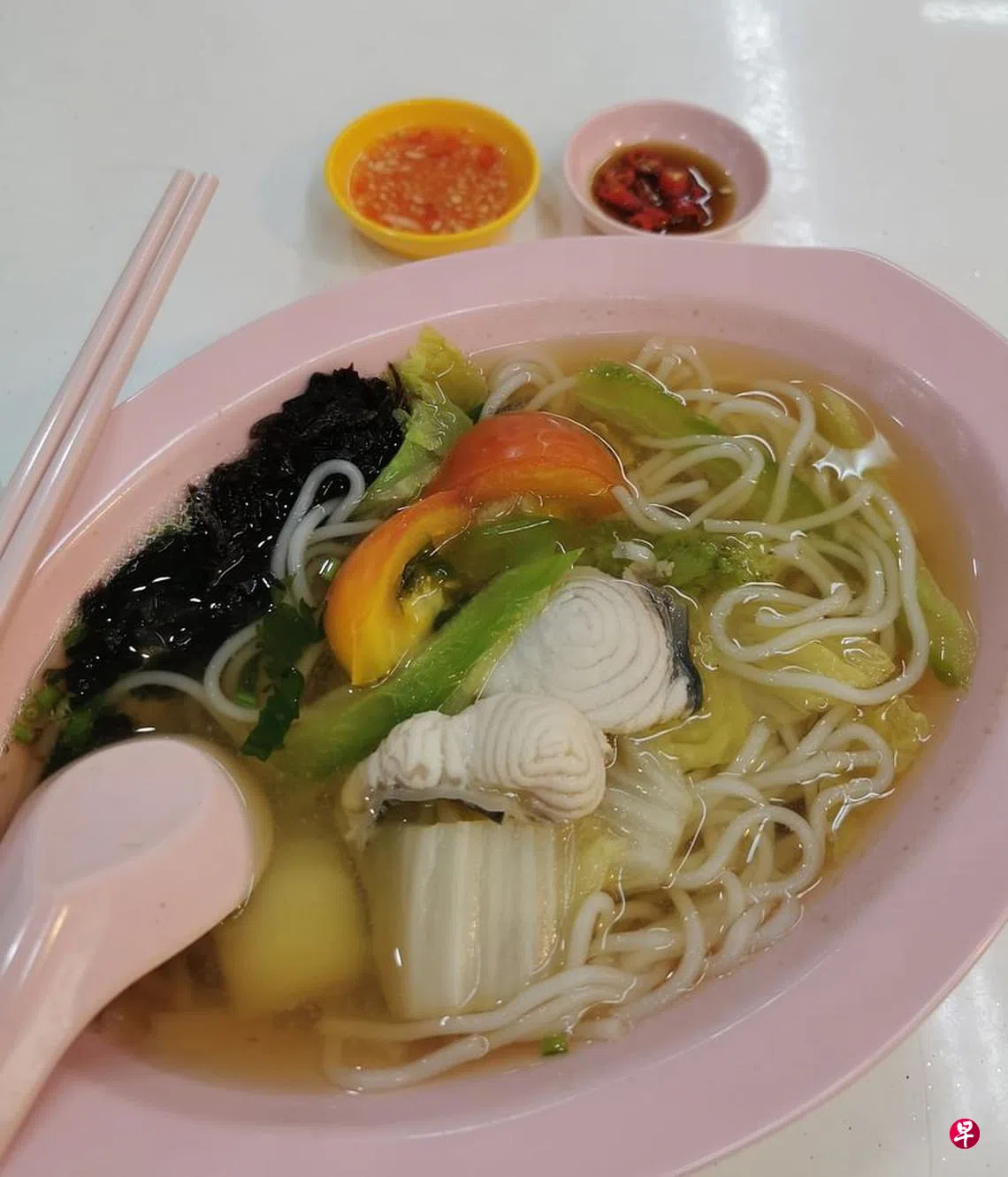 老板选用的大板马鲛属于马鲛鱼当中的一等品,价格较高,不过肉质更扎实和鲜甜。还记得一名潮州鱼汤摊贩接受媒体访问时说过,早期大多数摊贩是用大板马鲛,但因为货源少,成本高,所以多改用巴当鱼。单凭这一坚持,就值得给许老板掌声。