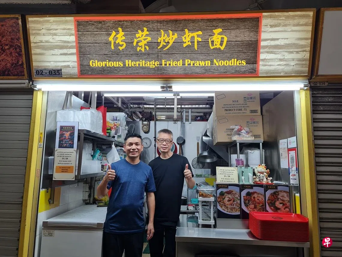 牛车水大厦熟食中心里的老摊位众多,传荣炒虾面是当中的“新面孔”,开业至今约两个月。