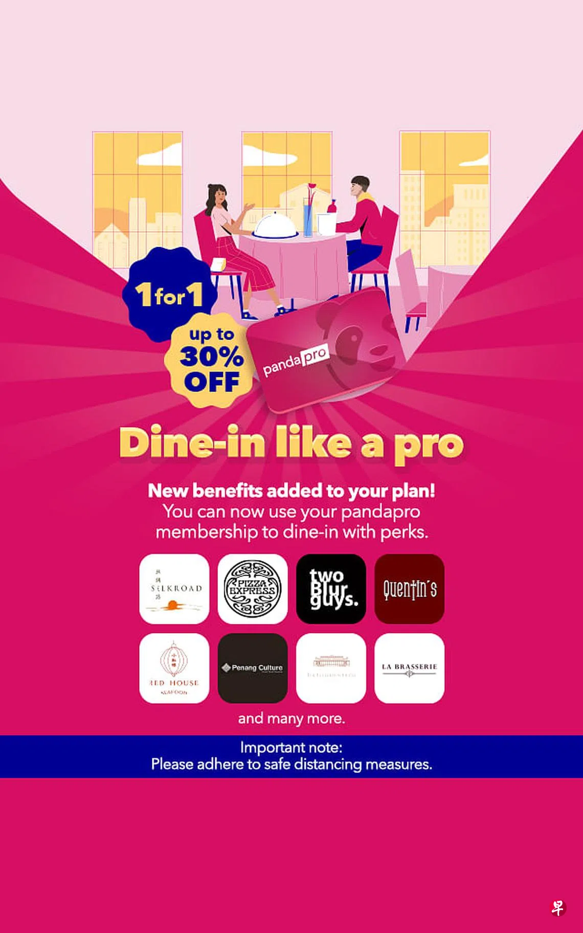 pandapro会员只须点击foodpanda应用的“Dine-in”键,即可享用这些优惠。付费时,餐馆会要求顾客扫描二维码以确认和享用折扣。